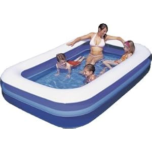 Produktbeschreibung: Dieser große rechteckige 2 Ringe Familien Pool bringt tollen Badespaß in Ihren Garten. Er misst 269 x 175 x 51 cm, besteht aus strapazierfähigem Vinyl und hat Sicherheitsventile. Die Seitenwände sind extra breit und strapazierfähig. Bei 75% Füllung fasst dieser 2 Ringe Pool ca 982 Liter Wasser.